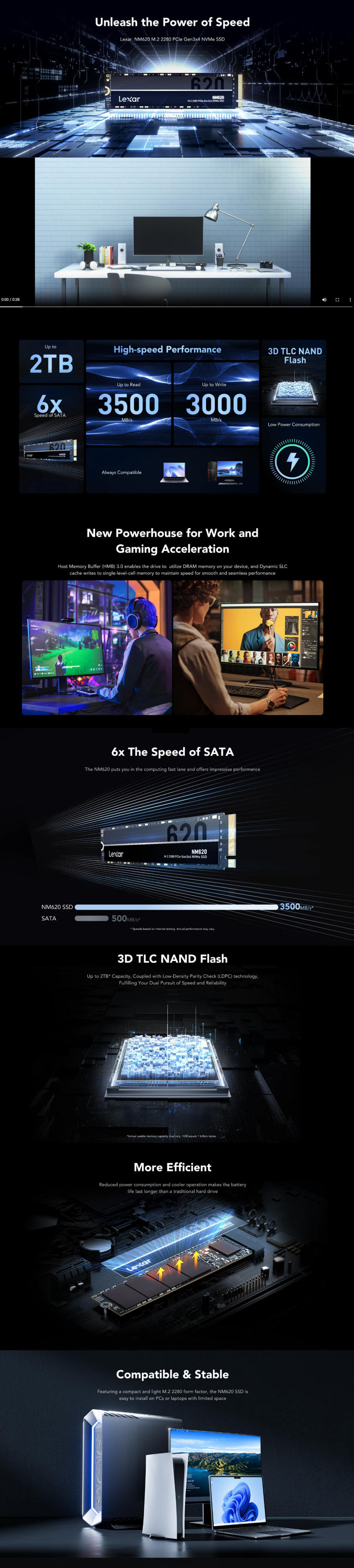Read Speed up to 3500MB/s, Write Speed up to 3000MB/s,