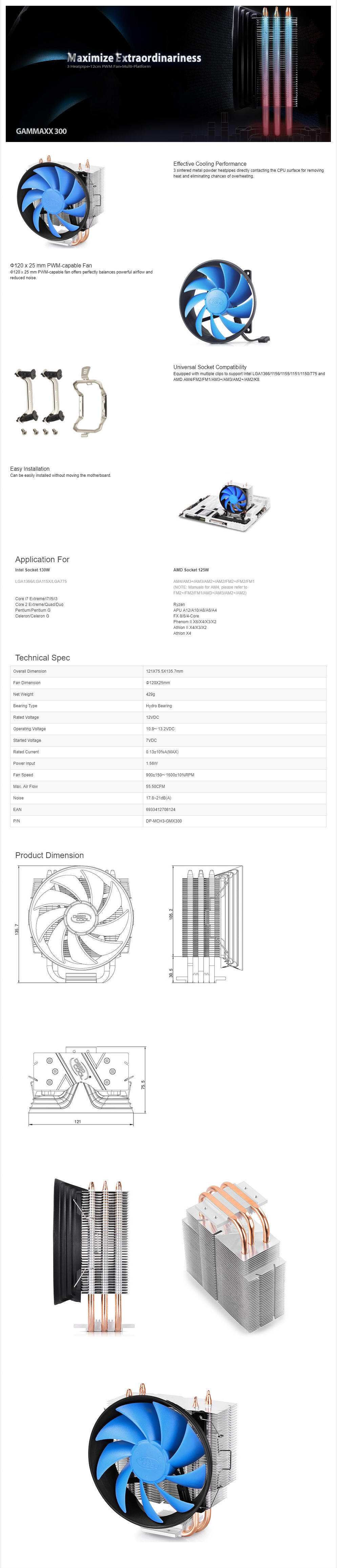 Deepcool Gammaxx 300, 12cm PWM Fan, Multi-platform, 100w Solution