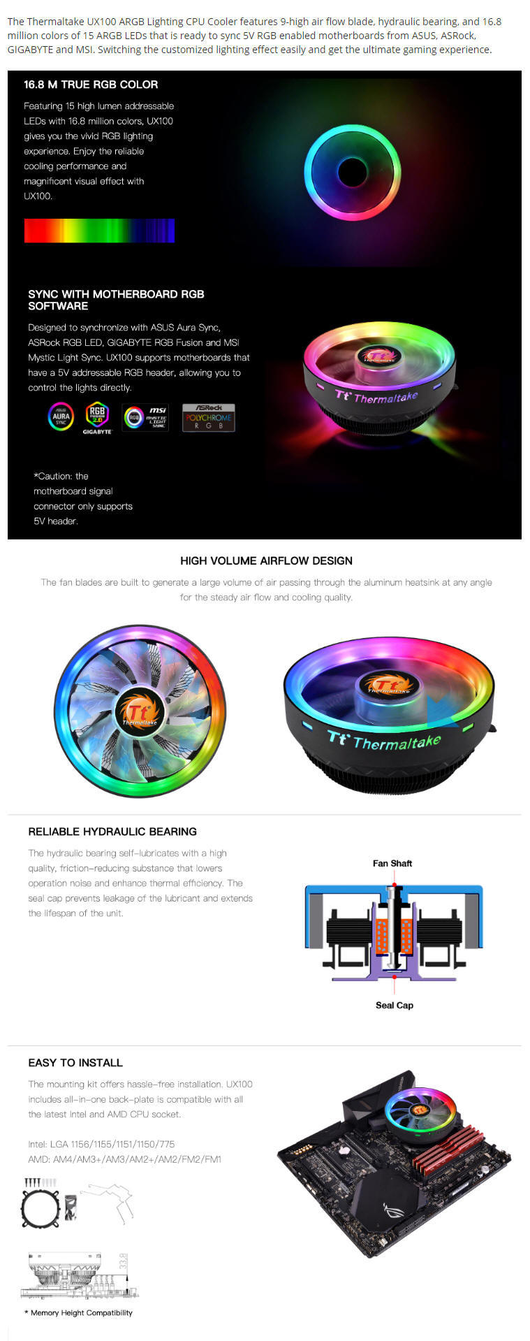 Thermaltake UX100ARGB Lightig CPU Cooler,