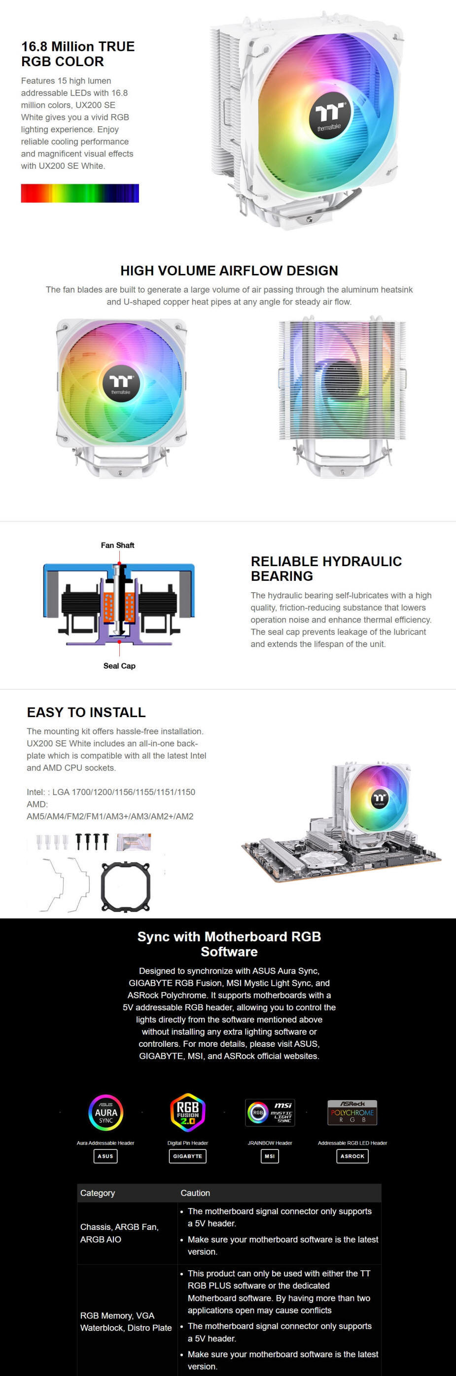 Thermaltake UX200 SE ARGB Lighting CPU Cooler - White Intel LGA 1700/1200/1156/1155/1151/1150