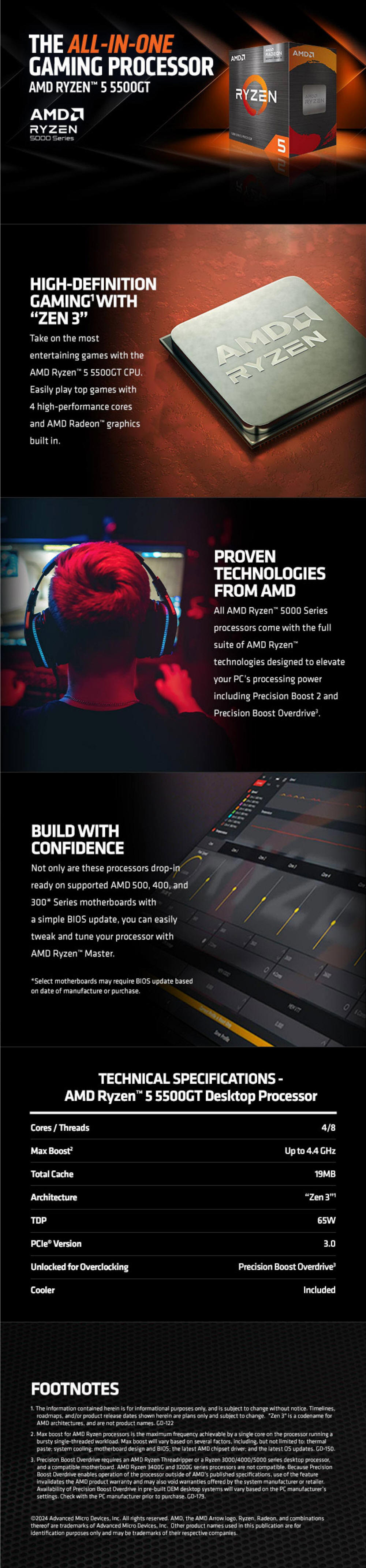 AMD Ryzen 5 5500GT 6 Cores 12 Threads 4.4GHz AM4 Processor with Wraith Stealth Cooler