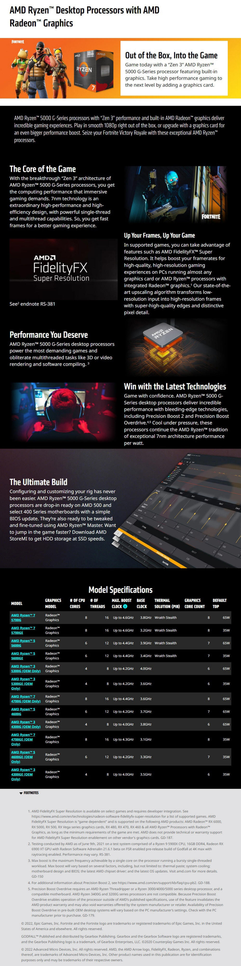 AMD Ryzen 5 5600G 6 Cores 12 Threads 4.4 GHz AM4 Processor with Wraith Stealth Cooler