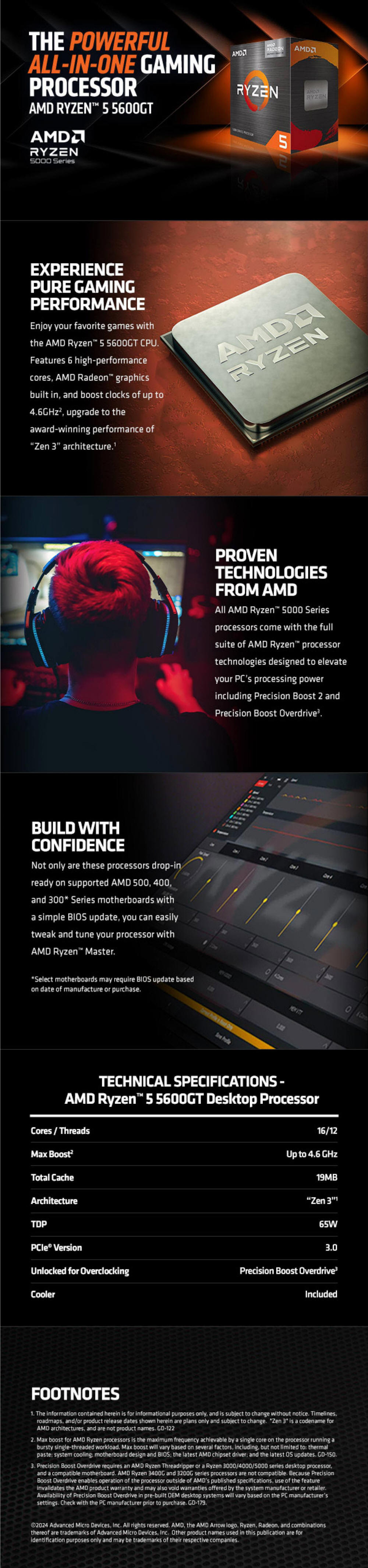 AMD Ryzen 5 5600GT 6 Cores 12 Threads 4.6GHz AM4 Processor with Wraith Stealth Cooler