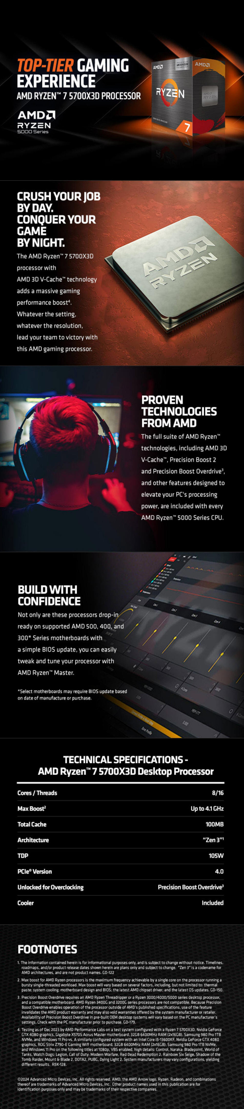 AMD Ryzen 7 5700X3D AM4 4.1GHz 8 Cores 16 Threads Processor without Cooler