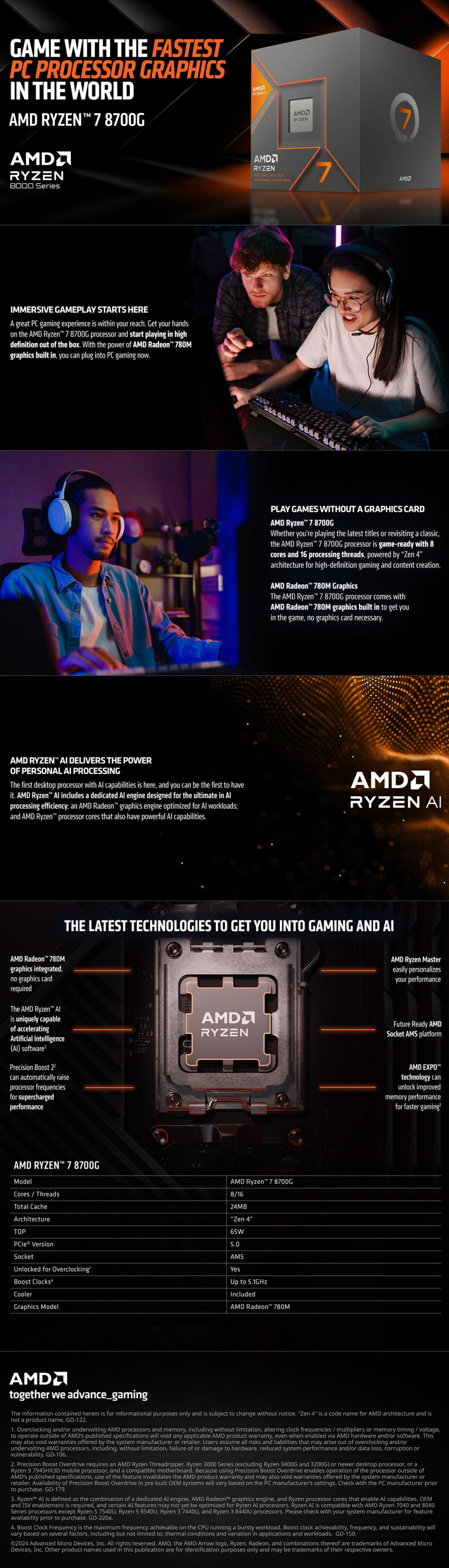 AMD Ryzen 7 8700G AI 8 Cores 16 Threads 5.1GHz AM5 Processors with Wraith Stealth Cooler
