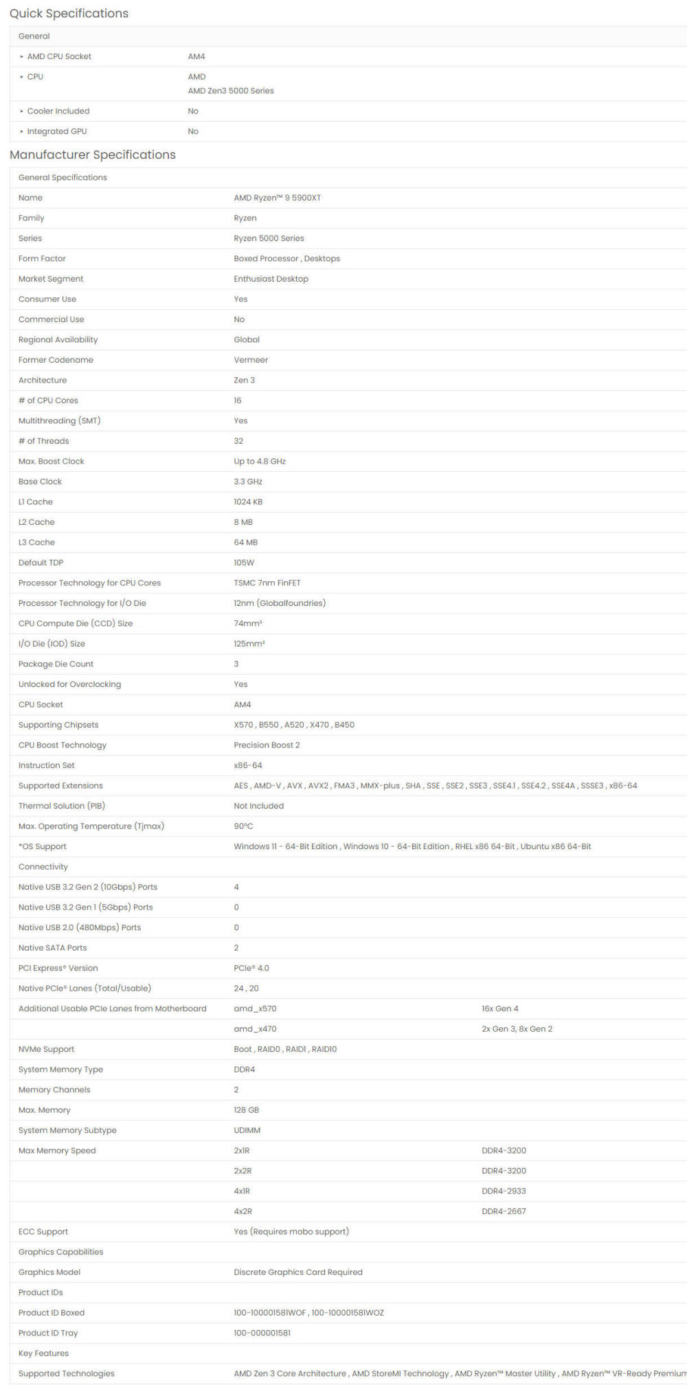 AMD Ryzen 9 5900XT 16 Cores 32 Threads 4.8GHz AM4 Processor without Cooler