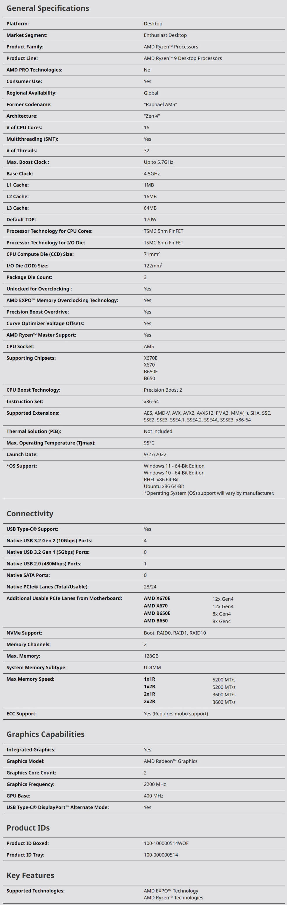 AMD Ryzen 9 7950X 16 Cores 32 Threads 5.7GHz Processor without Cooler