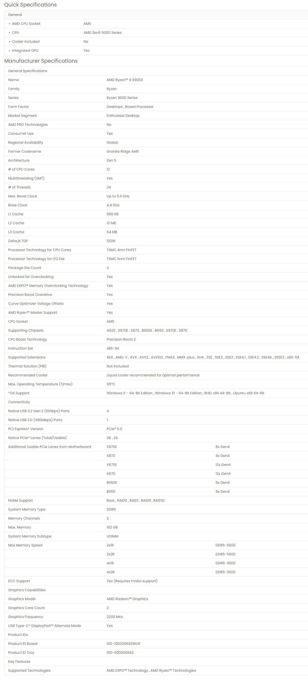 AMD Ryzen 9 9900X 12 Cores 24 Threads 5.6GHz AM5 Processor  without Cooler