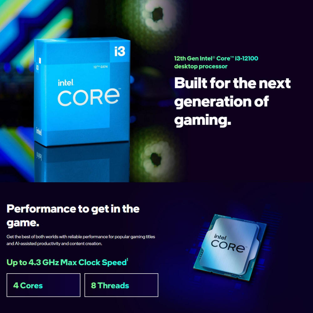 Intel 12th Gen Core i3-12100 4 Core 8 Threads 4.3GHz LGA1700 Processor with CPU Cooler