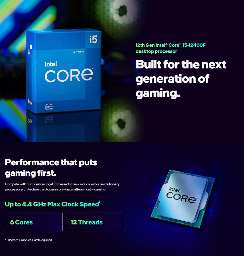 Intel 12th Gen Core i5-12400F 6 Cores 12 Threads 4.4GHz Processor with CPU Cooler with CPU Cooler