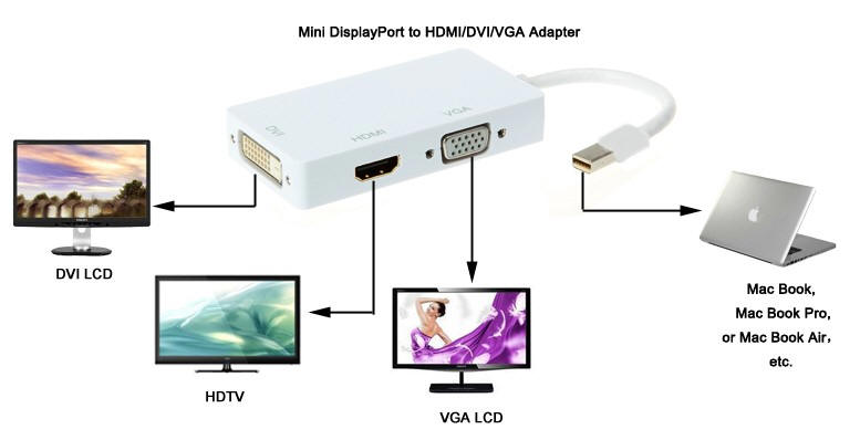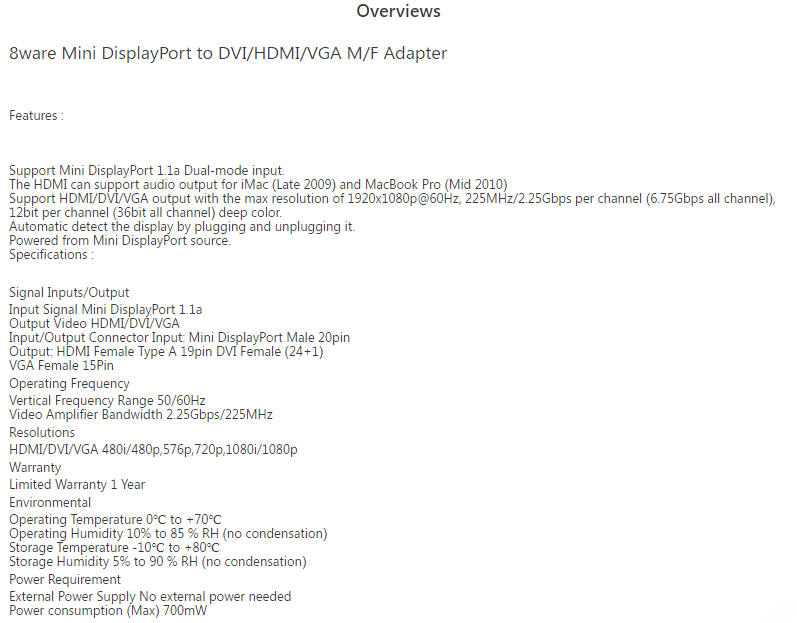 8ware Mini DisplayPort to DVI/HDMI/VGA M/F Adapter