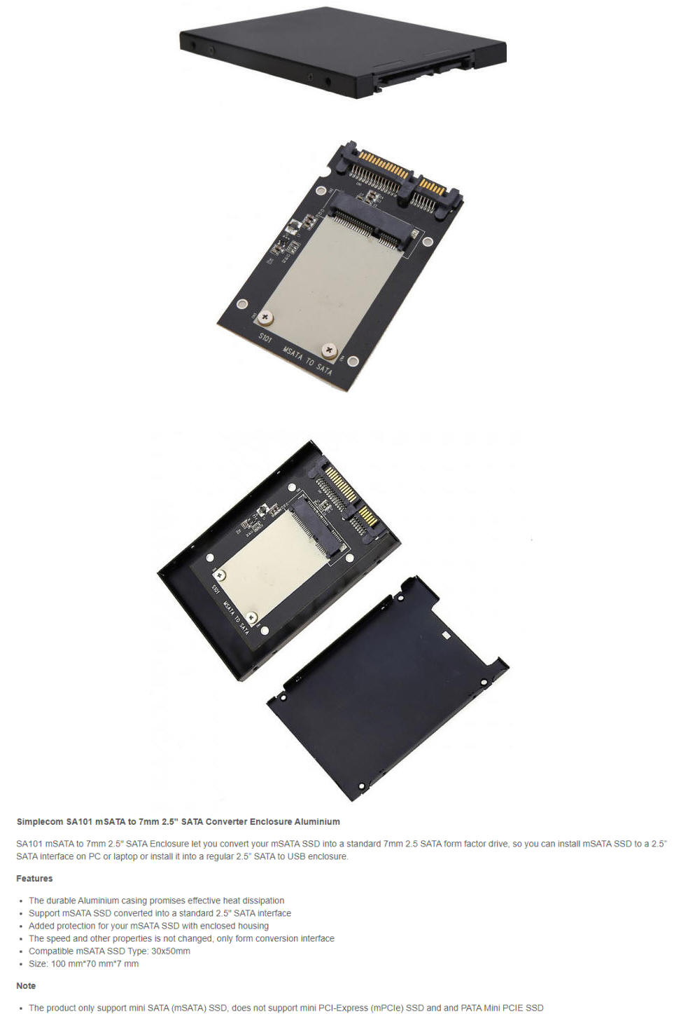 Simplecom SA101, mSATA to 7mm 2.5" SATA Converter Enclosure Aluminium