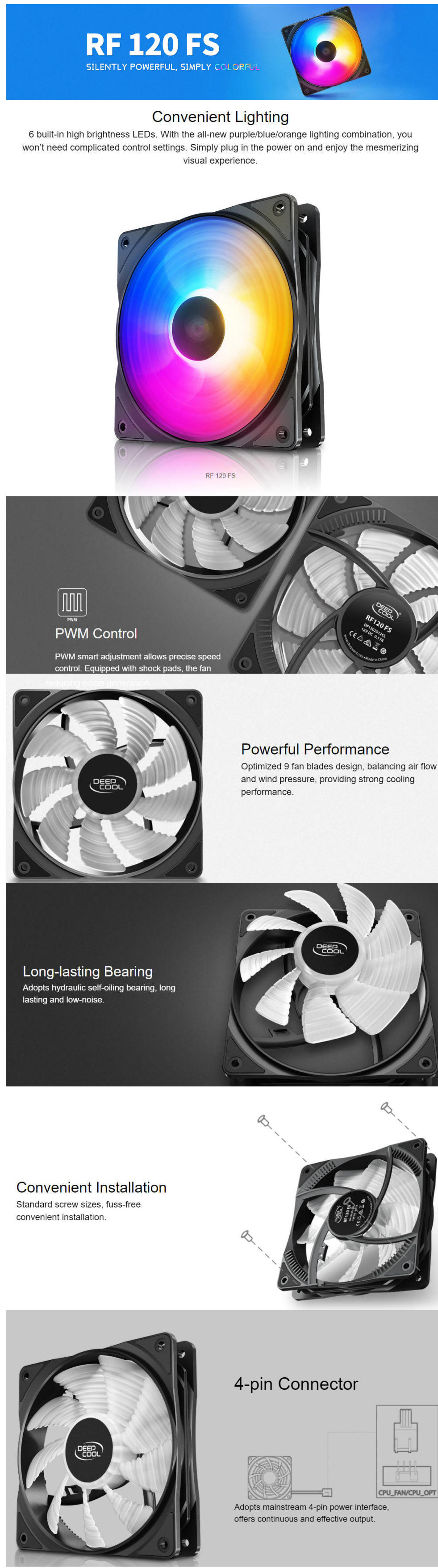 Deepcool RF120 FS Preset Purple/Blue/Orange LED Combination