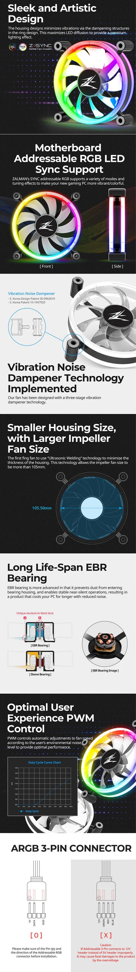 Zalman ZM-LF120, Size: 120mm, Airflow: 43CFM, Noise: 25dBA, ARGB