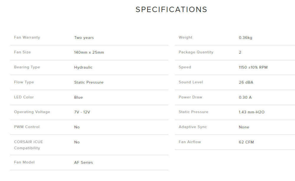 Corsair Air Series AF140 LED (2018) Blue 140mm Fan Dual Pack