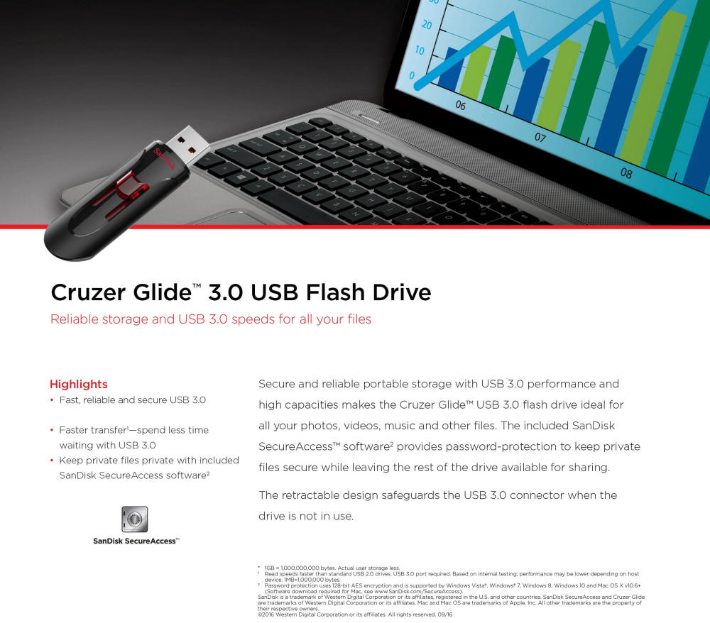 Sandisk Cruzer Glide USB 3.0 64GB Flash Drive - Black