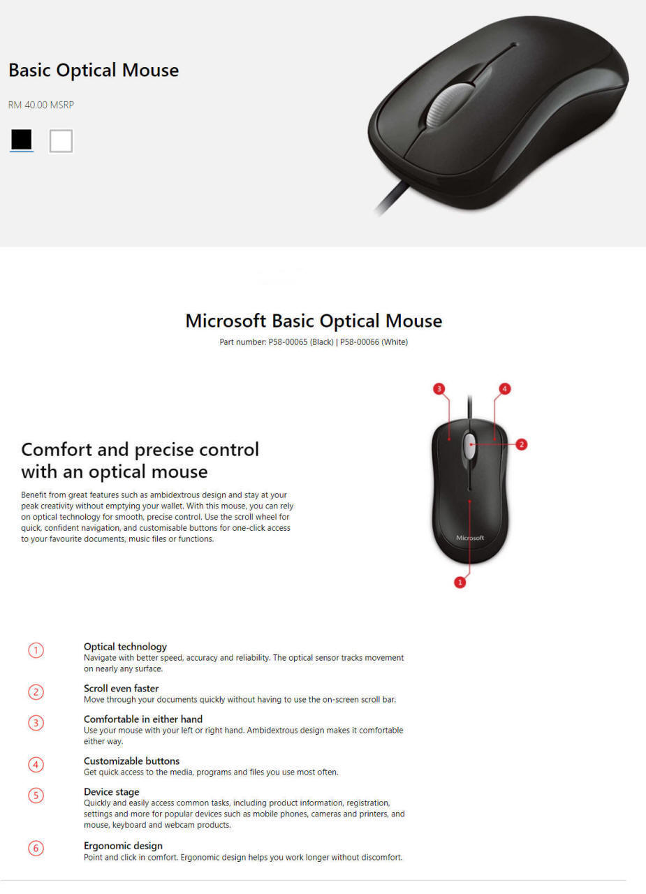 Microsoft P58-00065, Basic Optical Mouse USB, Black