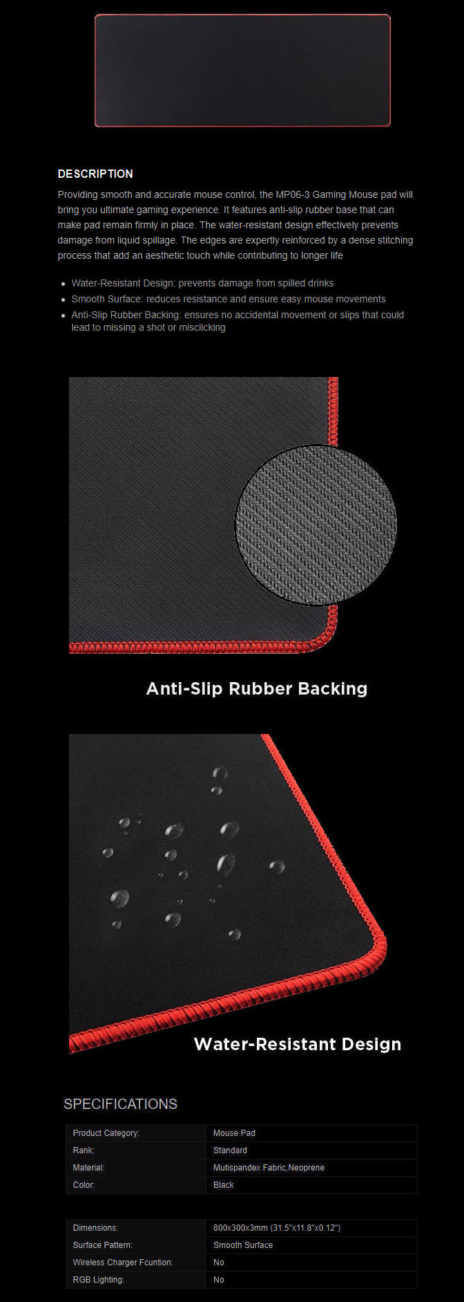 Brateck Extended MP02-3 Large Gaming Mouse Pad with Stitched Edges