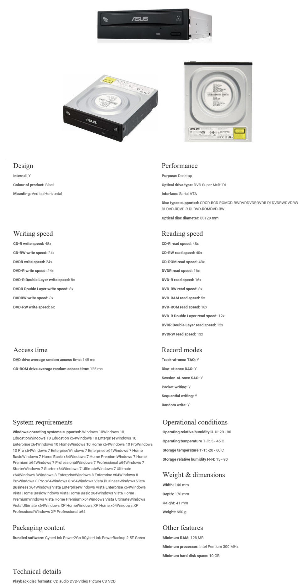 Asus [24D5MT] 24xDVD Double Layer Supported, SATA, BLACK, OEM