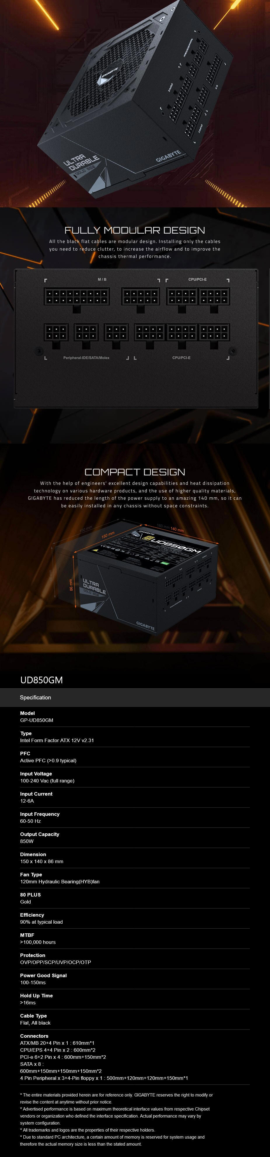 Gigabyte UD850GM 850W ATX PSU Power Supply 80+ Gold