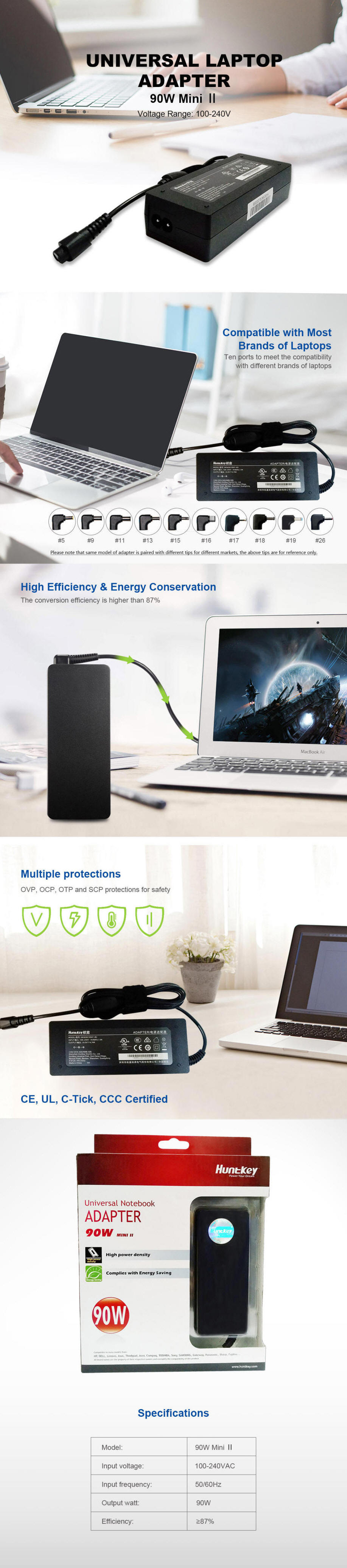 Huntkey 90W Mini II Edition Notebook Laptop AC Adapter with 10 Tips