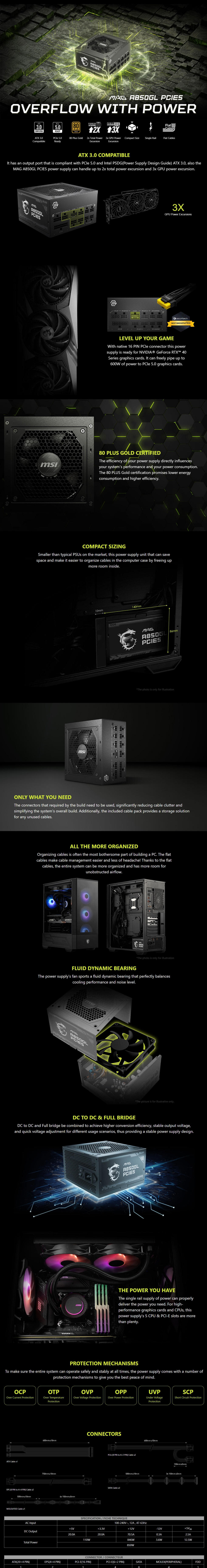 MSI MAG A850GL PCIE5 850W 80+ Gold ATX 3.0 Power Supply