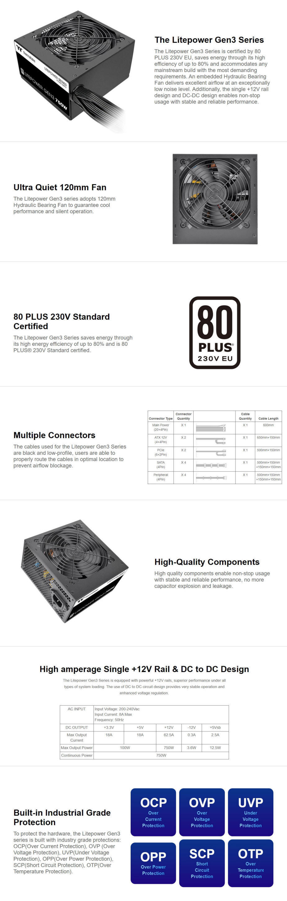 Thermaltake Litepower Gen3 750W 80 Plus Power Supply