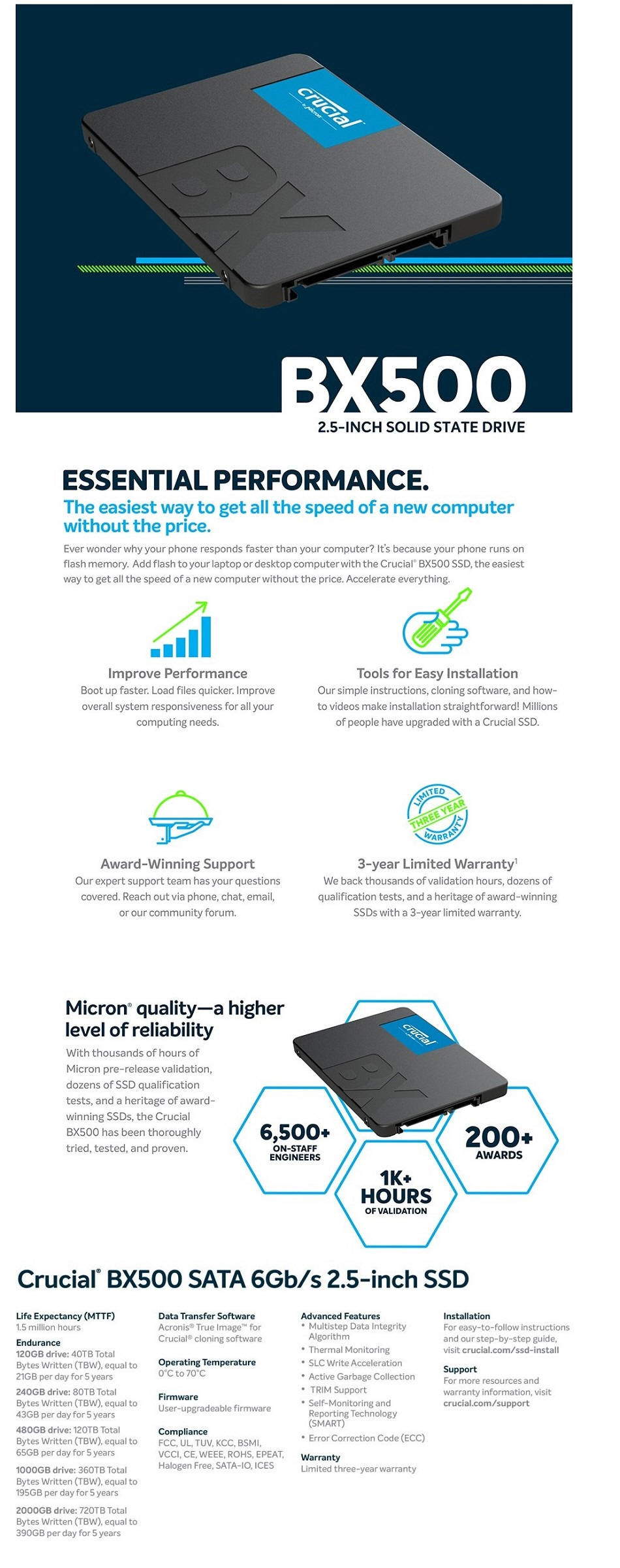 Crucial CT1000BX500SSD1, BX500, 1TB,