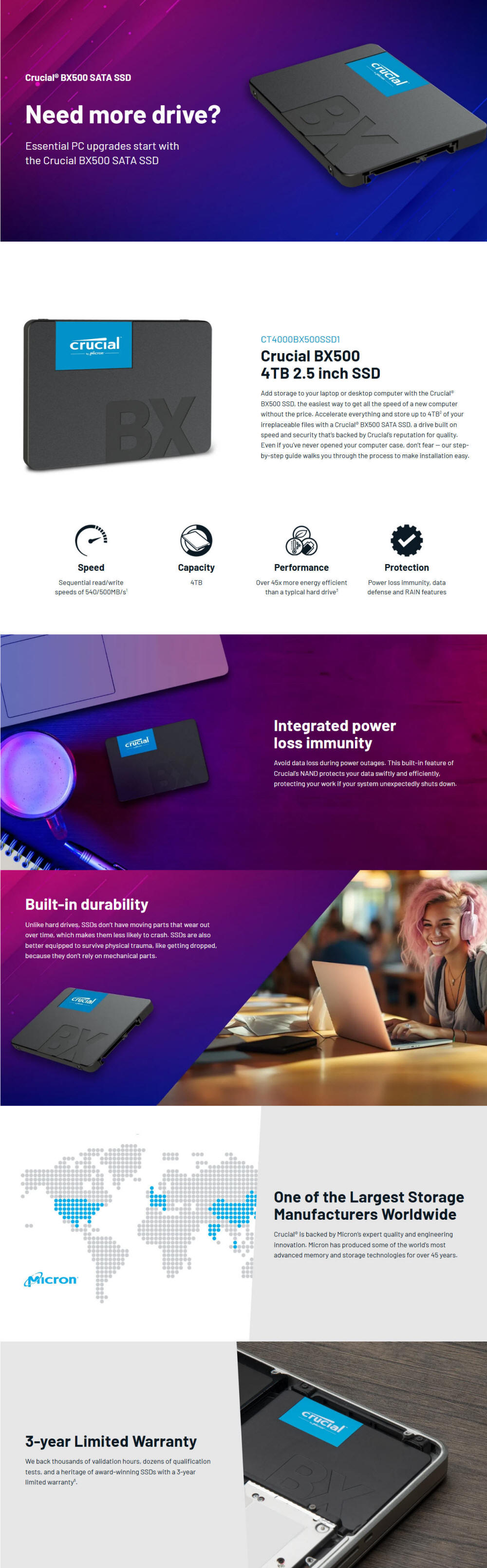 Crucial CT4000BX500SSD1, BX500 4TB, 2.5"