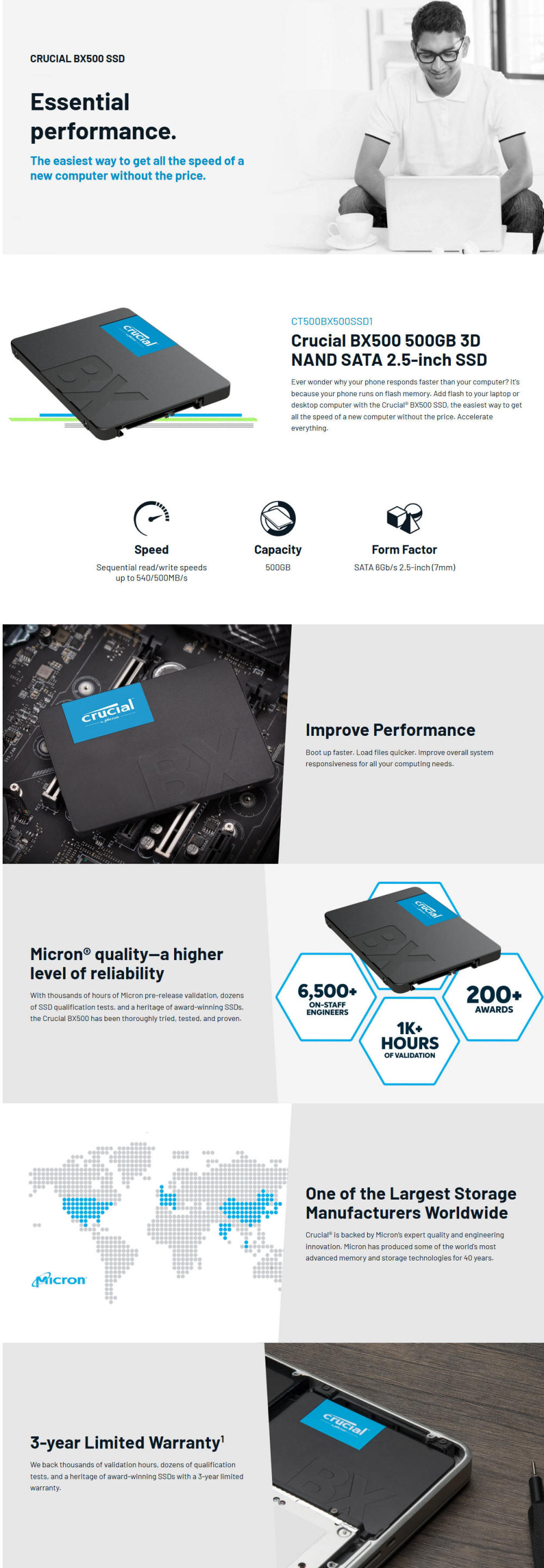 Crucial CT500BX500SSD1, BX500, 500GB,