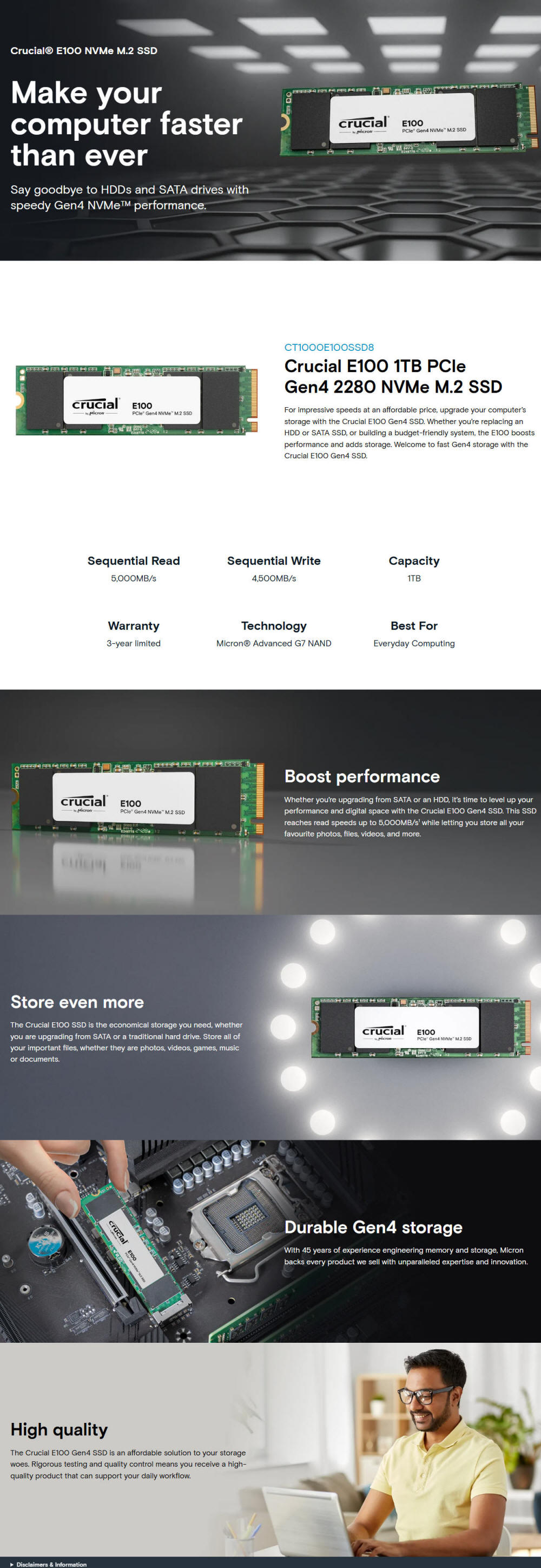 Crucial CT1000E100SSD8, 1TB, Gen4, NVMe