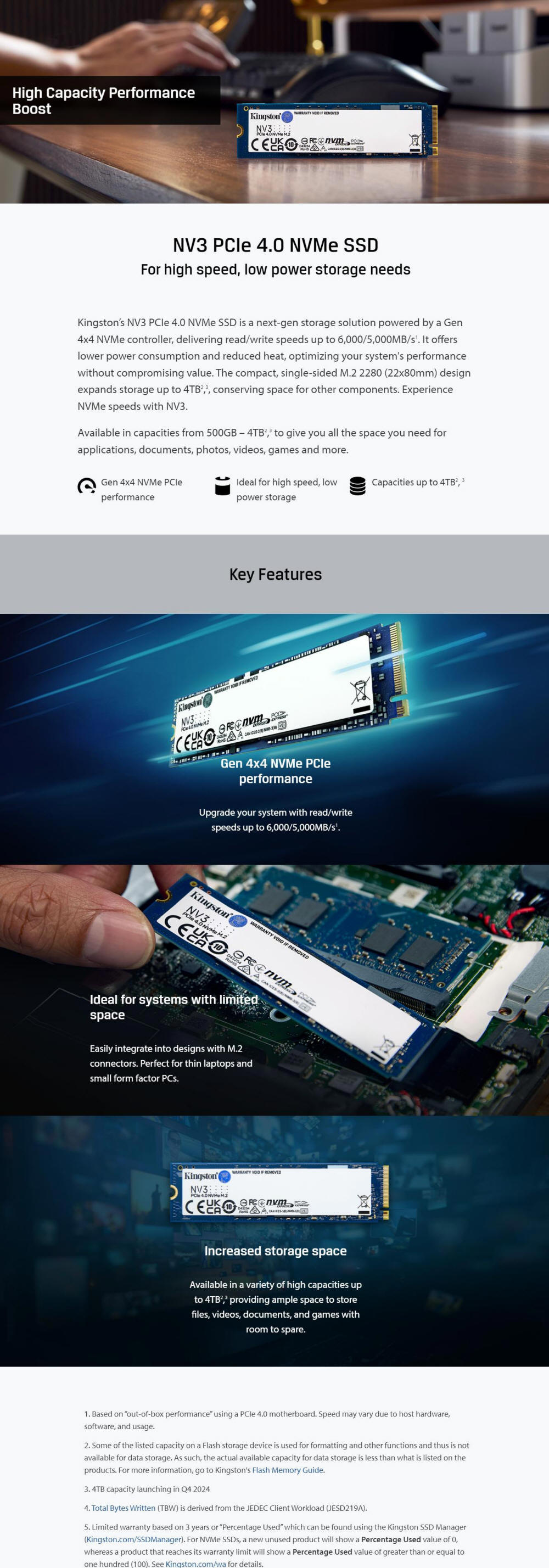 Kingston SNV3S 4TB NV3 PCIe Gen4 NVMe M.2 SSD