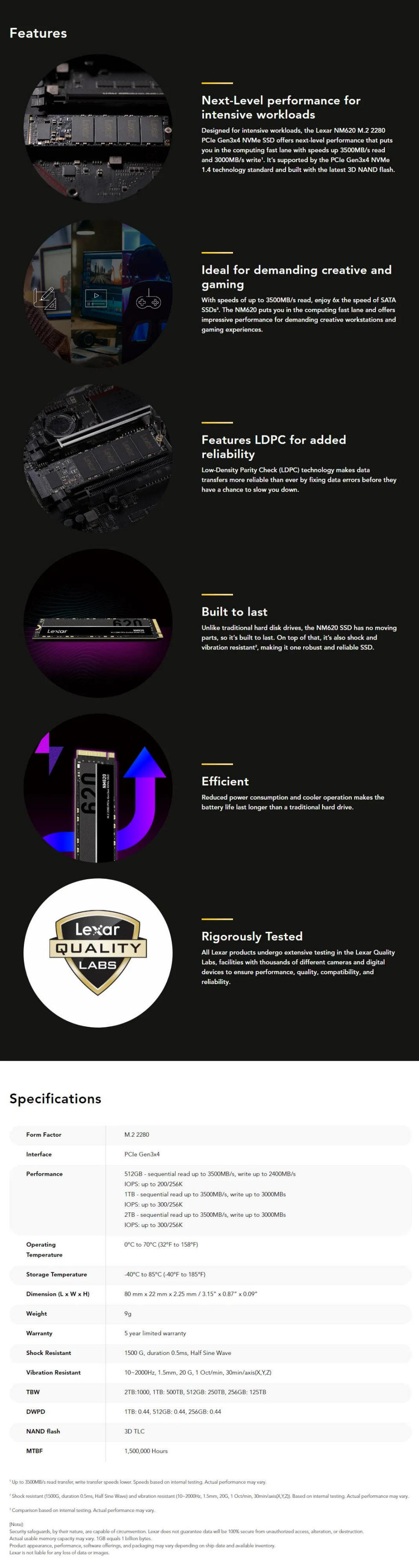Lexar NM620 2TB M.2 NVMe PCIe Gen3x4 SSD