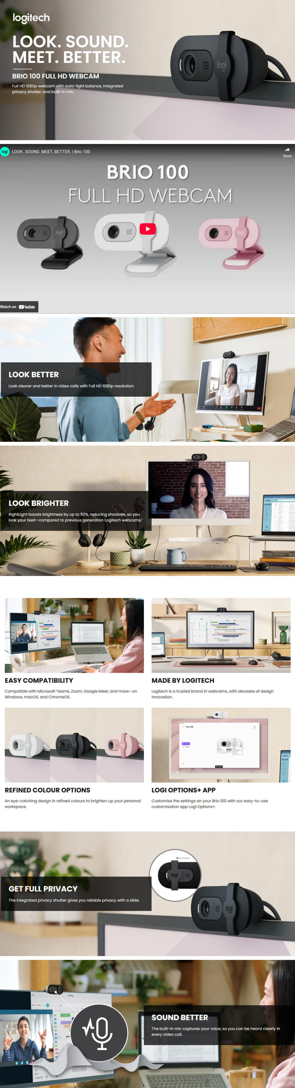 Logitech Brio 100 Full HD 1080p Webcam - Graphite