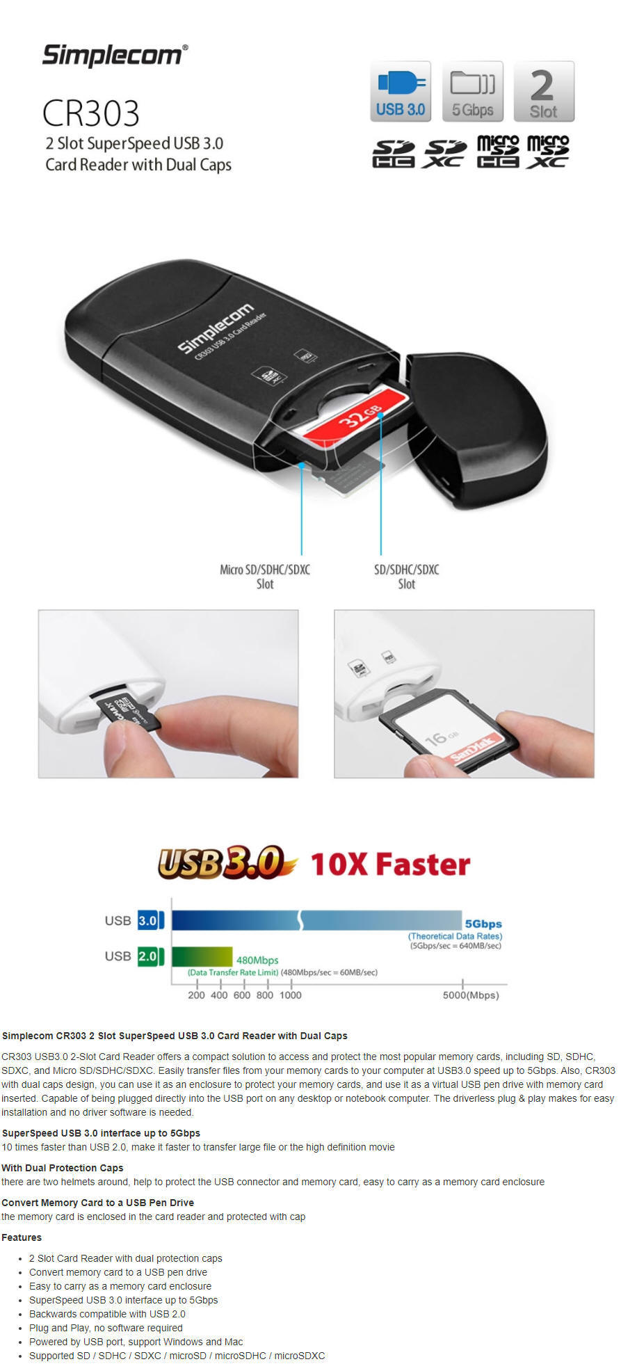 Simplecom CR303 2 Slot SuperSpeed USB 3.0