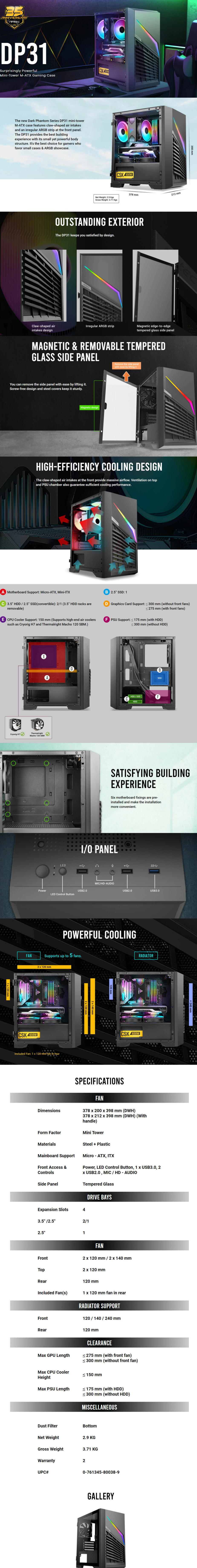 Antec DP31 mATX, ITX, LED control, USB 3.0, Tempered Glass