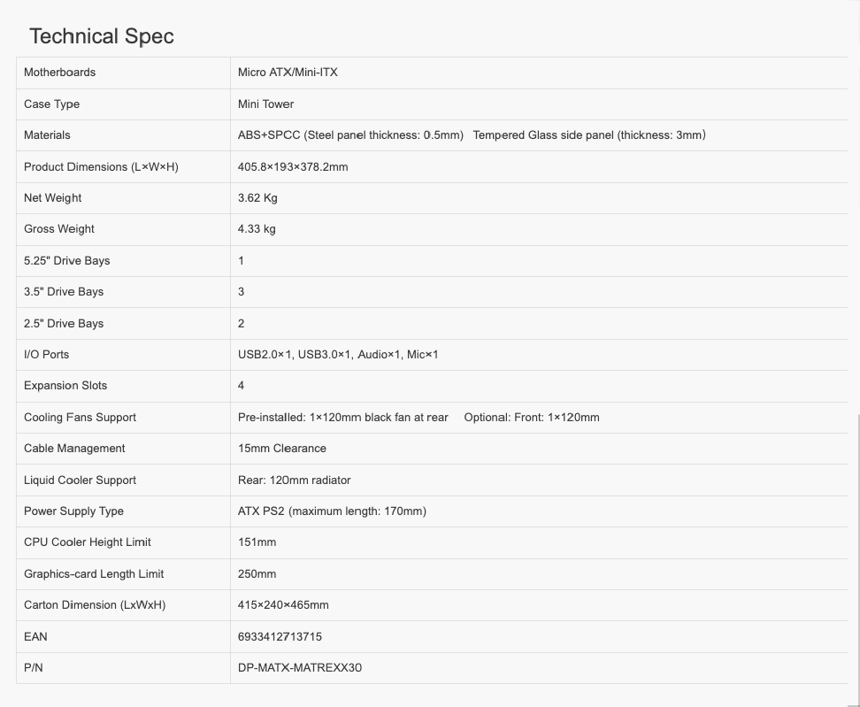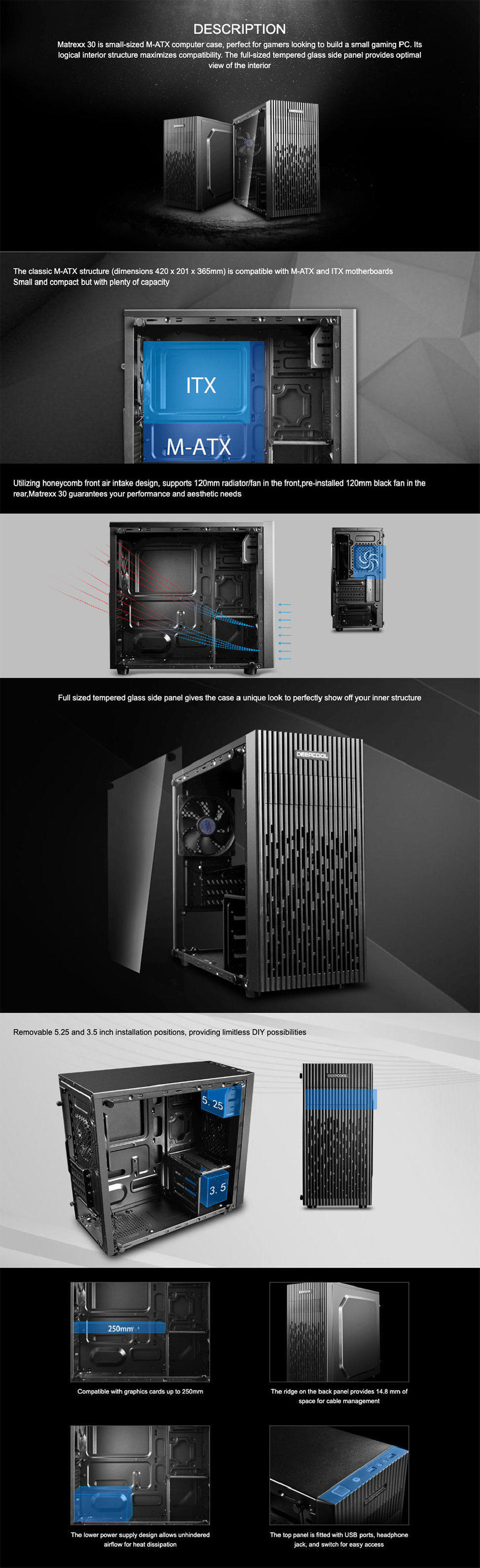 Deepcool MATREXX 30, Full Tempered Glass Side Panel