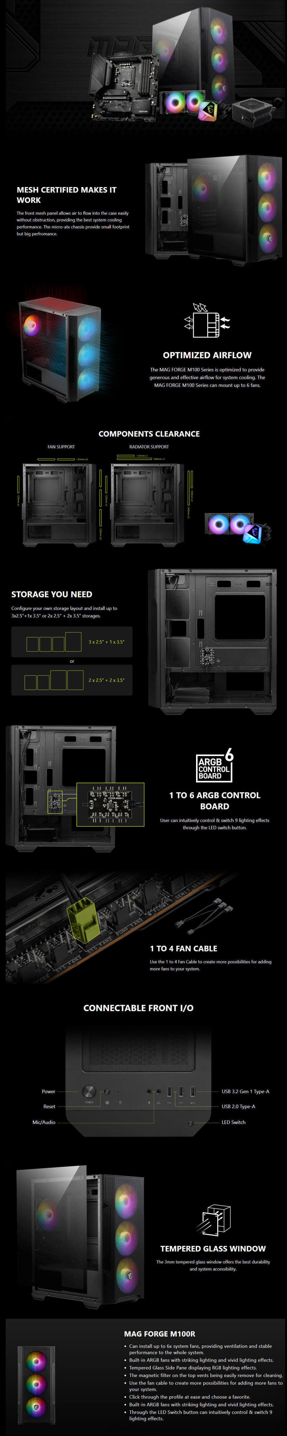 MSI MAG Forge M100R Micro ATX Case, T/G Window, White