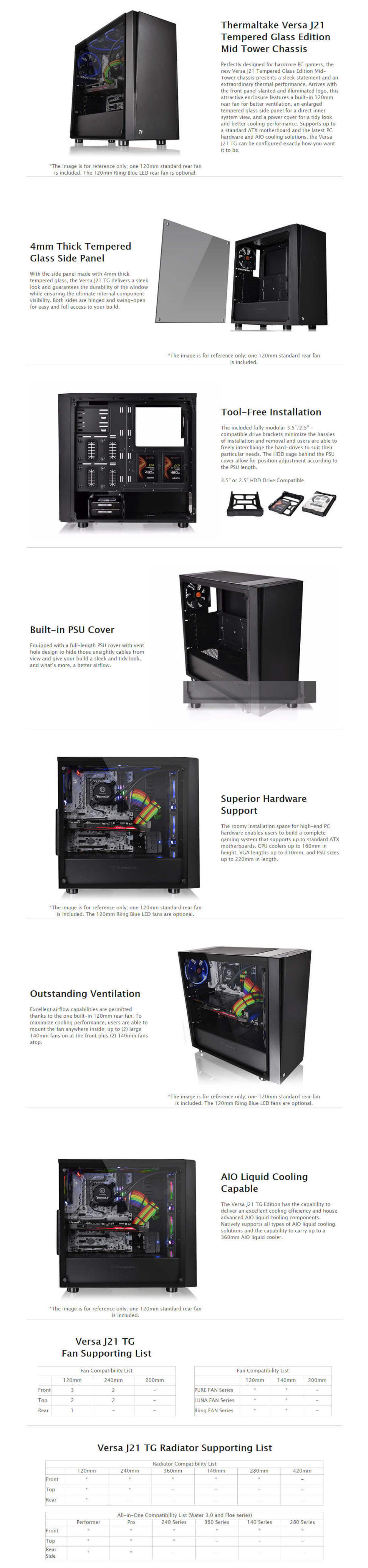 Thermaltake Versa J21 Mid-Tower Black ATX Case, T/G Window