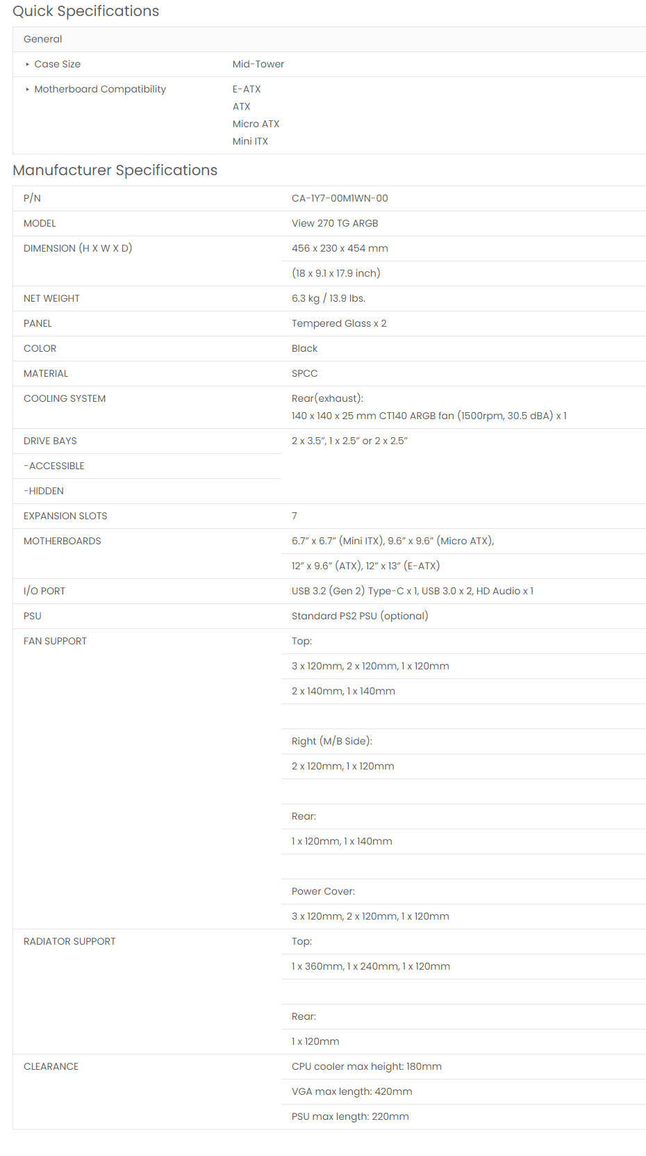 Thermaltake View 270 TG ARGB Mid-Tower Case - Black