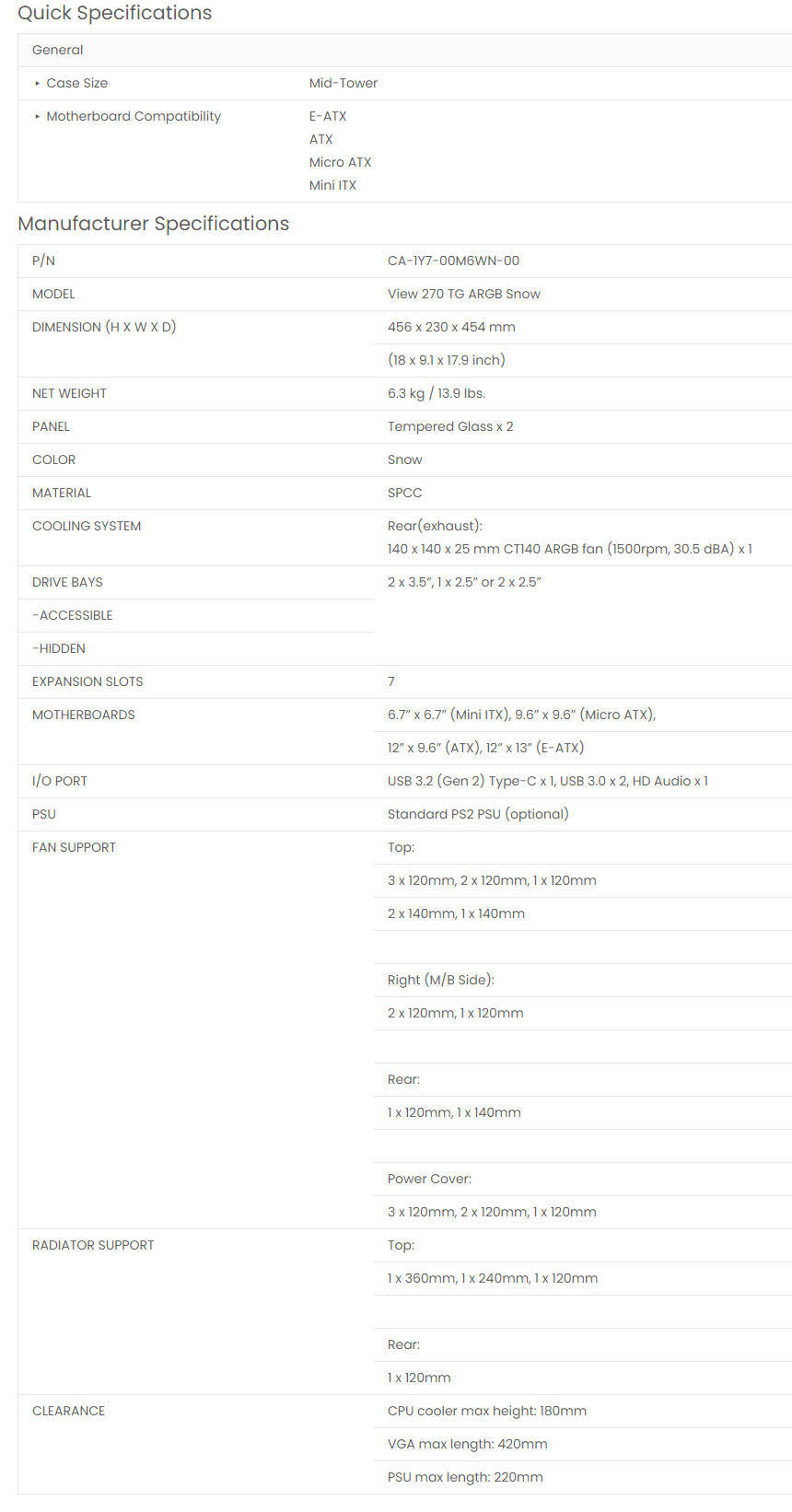 Thermaltake View 270 TG ARGB Mid-Tower Case - Snow