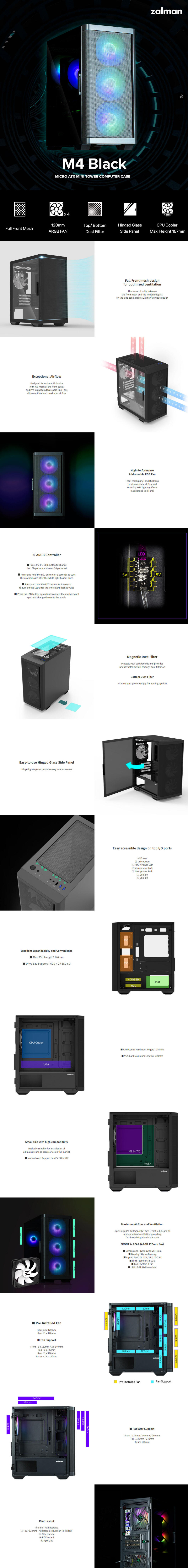 Zalman M4 BLACK, Mini Tower, Tempered Glass