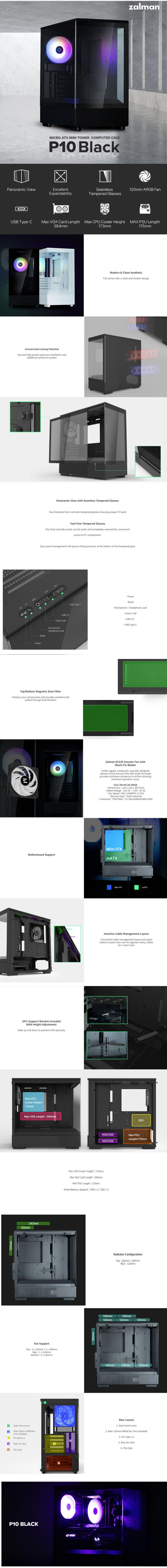 Zalman P10 Black, Mini-Tower, Tempered Glass